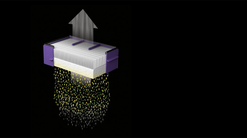 HEPA filtrs savāc gaisā suspendētas daļiņas. Tas aprīkots ar sietiņu, kas aiztur lielākas daļiņas, īpašu slāni pūku un šķiedru satveršanai un gofrētu HEPA struktūru, kura aiztur pat sīkdaļiņas 0,1 mikrona lielumā.